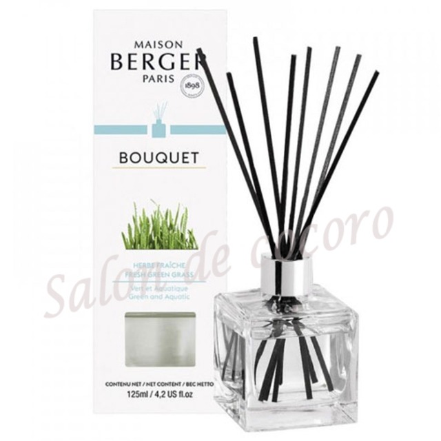 フランスで1898年創業から127年の歴史を誇るアロマのパイオニア【メゾンベルジェパリ社】待望のこの製品は火を使わず、MADE IN FRANCE本場のフランスのアロマを気軽に体験出来る素晴らしい製品です。スティックタイプは、差すだけでフランスの素晴らしいアロマが悪臭を中和して広がり、アロマスティックの本数を増減させる事により、『香りの強さ』と『芳香時間の調節』が可能です。玄関、キッチン、リビング、洗面所、トイレ、お風呂場、寝室、子供部屋、仕事場など火を使わないので何処でも常時悪臭を中和して、フランスの本物の素晴らしいアロマを楽しめます。お勧めの使用方法は、はじめにスティック8本全て差し込むのでは無く、4本からスタートして、香りが弱いかな?又は4本でスタートしてから1or2週間経過したかな?と感じたら1本づつ増やす方法です。 ※スティックをローズ(ラウンド用)別売りに変更して、ガラスの瓶に差しアロマを楽しむ事が出来ます。 使用期間:約4週間(スティック8本使用)から8週間(スティック2本から4本使用)※使用環境、スティックの数により変わります。 内容量:125ml 芳香持続時間:約4~8週間 グリーングラスの香りの説明・・「草」の単語は植物を連想させます。しかし、私たちは草地から直接香りを取り出 すことはできません。新しく刈った湿った草を柔らかく、パワフルなグリーンノー トとして堪能するため、このカットグラス(刈り取った草)」の香りは研究室で再 現します。実は1959年に植物の中にcis-3-ヘキセン-1-オールが自然の状態で含 まれていることが発見されことにより、パフューム業界では今日、少量分子で使用 し、植物の香りを強化する手法が一般的となっています。この方法で「フレッ シュ・ハーブ(草)」のグリーンノートが再現され、そしてフローラルブーケの香り を添えることで、ウッディ系の香りもリフレッシュ感を帯び、全体的の実にクリアな フレグランスに仕上がっています。 【 香りのピラミッド 】 トップノート:カットガラス、グリーンリーフ ミドルノート:水の花、バイオレット、ガルバナム ラストノート:シダーウッド、プレシャスウッド、オークモス ※スティックをローズ(ラウンド用)別売りに変更して、ガラスの瓶に差しアロマを楽しむ事が出来ます。 使用期間:約4週間(スティック8本使用)から8週間(スティック2本から4本使用) ※使用(風通しの良し悪し)環境、スティックの数により変わります。 内容量:125ml