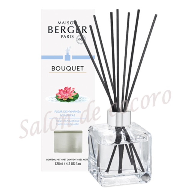 ウイルス、菌対策のパフュームオイル活用方法 一般的にイソプロピルアルコールは50~70%が効果にふさわしい濃度といわれていますが、ランプベルジェのオイルは、エタノールと同じアルコール系の純度の高いイソプロピルアルコールを使用しております。 ウイルスや抗菌の対策として市販の消毒用アルコール製品がございますが、ランプベルジェのオイルも対策として、ランプを焚く事で活用することも可能です。 ※ランプベルジェのオイルは手・指・皮膚の除菌・殺菌・消毒剤ではありません。肌に直接付ける等はお止め下さい。新型コロナウイルス、インフルエンザへの効果は確認できておりません。感染予防のために、石けん等による入念な手洗いとうがいなどをお勧めしております。 フランスで1898年創業から127年の歴史を誇るアロマのパイオニア【メゾンベルジェパリ社】待望のこの製品は火を使わず、MADE IN FRANCE本場のフランスのアロマを気軽に体験出来る素晴らしい製品です。 スティックタイプは、差すだけでフランスの素晴らしいアロマが悪臭を中和して広がり、アロマスティックの本数を増減させる事により、『香りの強さ』と『芳香時間の調節』が可能です。 玄関、キッチン、リビング、洗面所、トイレ、お風呂場、寝室、子供部屋、仕事場など火を使わないので何処でも常時悪臭を中和して、フランスの本物の素晴らしいアロマを楽しめます。お勧めの使用方法は、はじめにスティック8本全て差し込むのでは無く、4本からスタートして、香りが弱いかな?又は4本でスタートしてから1or2週間経過したかな?と感じたら1本づつ増やす方法です。 ※スティックをローズ(ラウンド用)別売りに変更して、ガラスの瓶に差しアロマを楽しむ事が出来ます。 使用期間:約4週間(スティック8本使用)から8週間(スティック2本から4本使用) ※使用環境、スティックの数により変わります。 内容量:125ml 芳香持続時間:約4~8週間 商品説明 フローラル&アクアティックフレッシュ 香りの分類:フレッシュ系 香りのデザイン ニンフィア(睡蓮/すいれん)のピュアな香りが融合したアクアノートとフローラルブーケの豪華なミドルノートにより、柑橘系の柔いトップノートが最初に立ち上がり、エキゾティックな香りの旅へと誘います。 <香りのピラミッド> トップノート:レモン、ベルガモット、ミント、ペッパー ミドルノート:アクアノート、スズラン、ニンフィア、ローズ、ジャスミン、ヒヤシンス ラストノート:ホワイトシダー