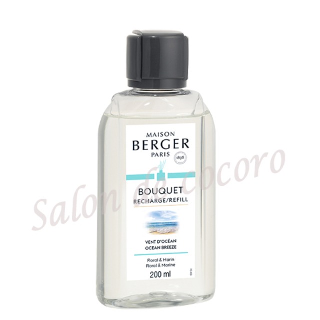 フランスで1898年創業から120年の歴史を誇るアロマのパイオニア【ランプベルジェ パリ社】の待望の新製品!この製品は火を使わず、MADE IN FRANCEの本物のフランスのアロマを気軽に体験出来る素晴らしい製品です。こちらのリフィルオイルは、スティックキューブ125mlなどのオイルの補充用となります。容器、スティックは付属していませんのでご注意下さい。 内容量:200ml 芳香持続時間:約8~16週間 ※使用環境、スティックの数により変わります。 ※スティックは消耗品です。リフィル使用の際はスティックもしくは、ローズラウンド専用の『ローズ』をお取替えください。 ★香りの特徴:オーシャン ローズやマリンの香りが広がる清々しいトップノートに華やかな花の香りが漂うミドルノート、ラストノートでは落ちついたウッディーな香りが広がります。 【 香りのピラミッド 】 トップノート:ローズ、ブラックカラント、マリンノート ミドルノート:ローズ、ジャスミン、スズラン ラストノート:ホワイトムスク、エキゾチックウッド、アンバー スティック125mlの使用期間:約4週間(スティック8本使用)から8週間(スティック2本から4本使用) ※使用(風通しの良し悪し)環境、スティックの数により変わります。