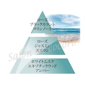 ローズやマリンの香りが広がる清々しいトップノートに華やかな花の香りが漂うミドルノート、ラストノートでは落ちついたウッディーな香りが広がります。