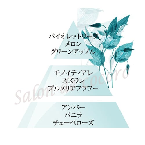 ミドルノート:ロース、ジャスミン、スズラン、グリシン(藤)